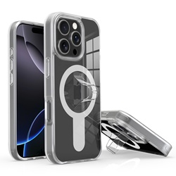 IPhone 16 ProMaxケース用iPhone16用ワイヤレス充電ケースと互換性のある透明な黄変しない半透明カバー電話スタンド